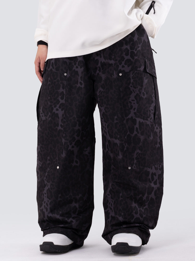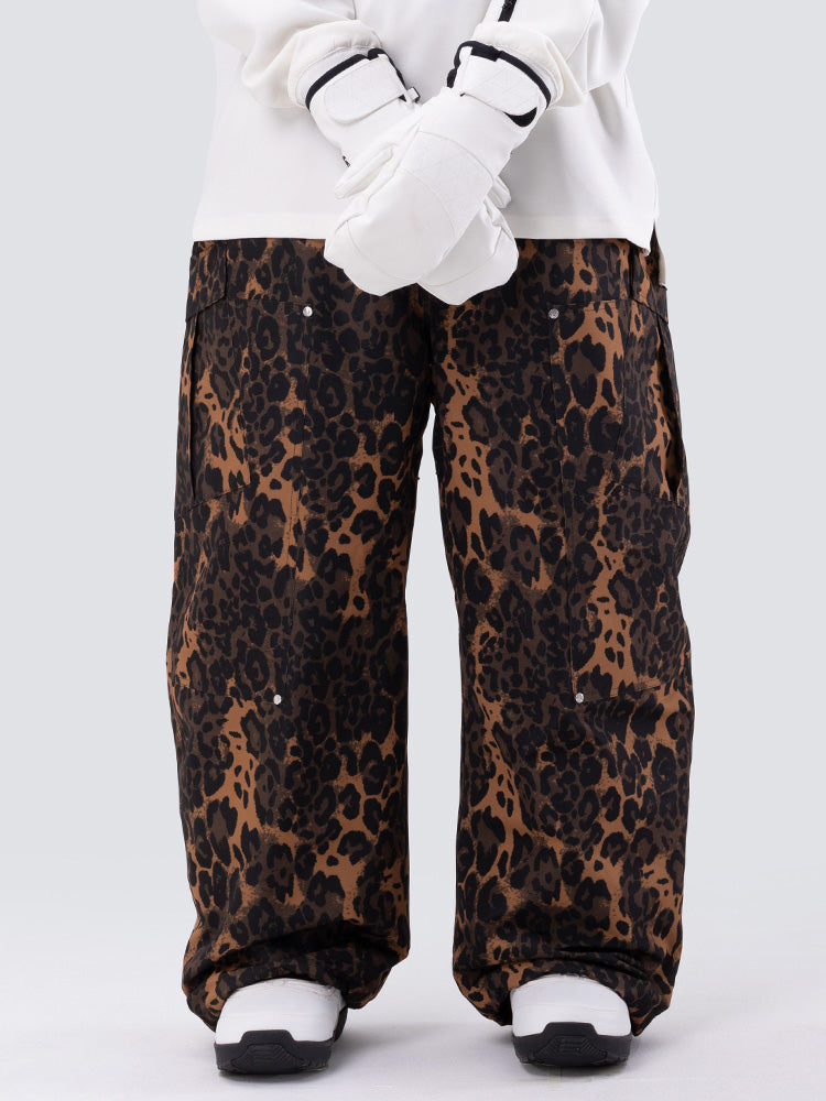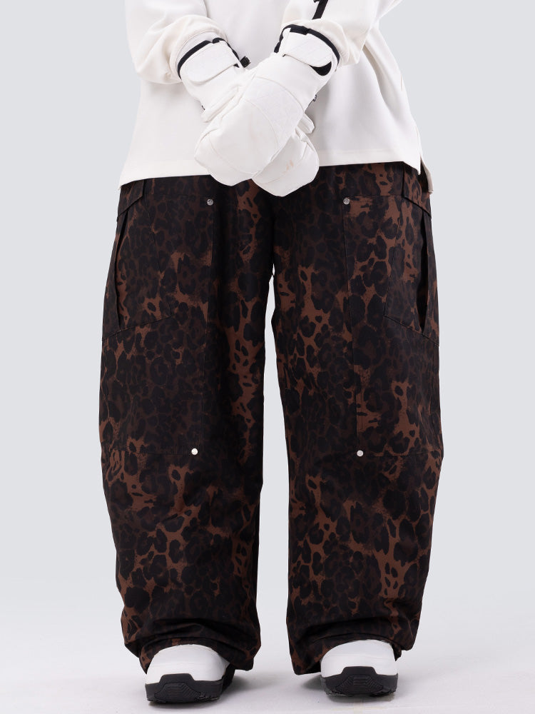 Women's Double Knee Mountain Freestyle Leopard Baggy Snow Pants